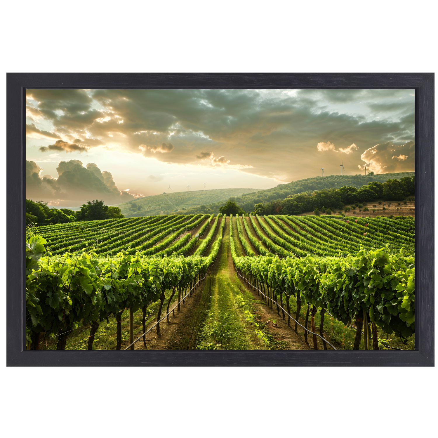 Zonsondergang in de Lush Wijngaard Heuvels canvas met baklijst