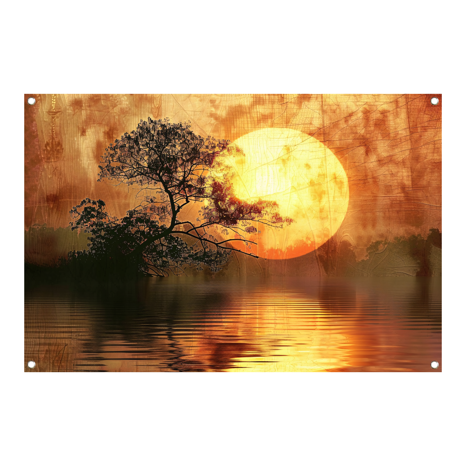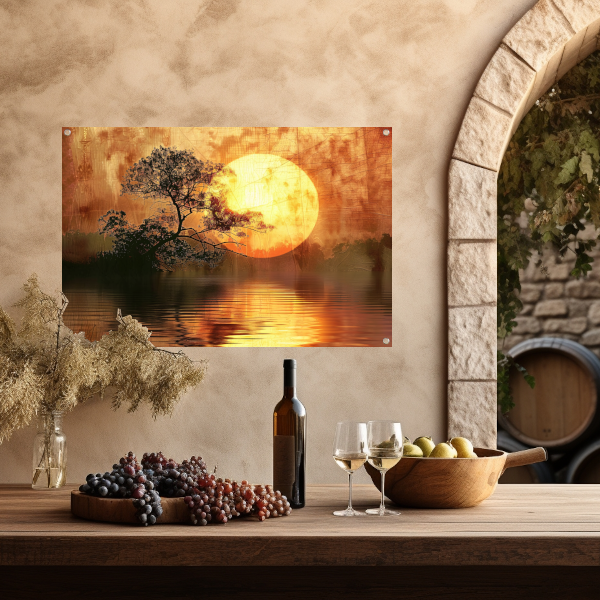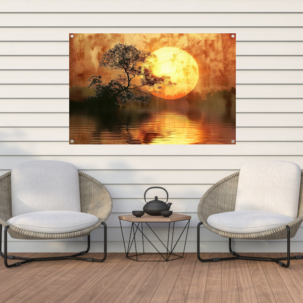 Zonsondergang met Wilgenboom tuinposter