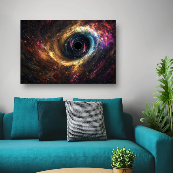 Dit bijzondere kunstwerk is een echte eyecatcher in elke ruimte en zal zeker de aandacht trekken van jouw gasten. Breng de mysterie en schoonheid van het heelal in huis met dit prachtige Zwart Gat in Sterrenstelsel acrylglas en geniet elke dag van dit unieke kunstwerk.