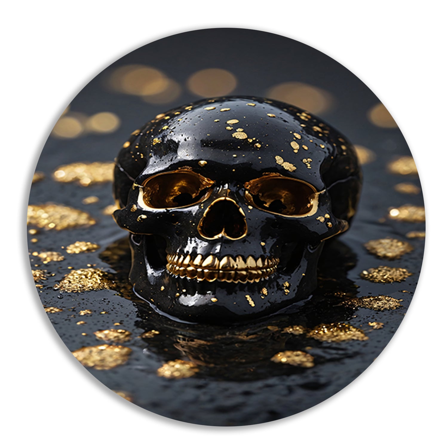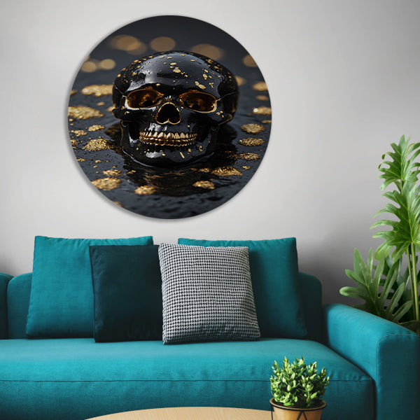 Zwart Gouden Schedel Op Natuursteen aluminium muurcirkel