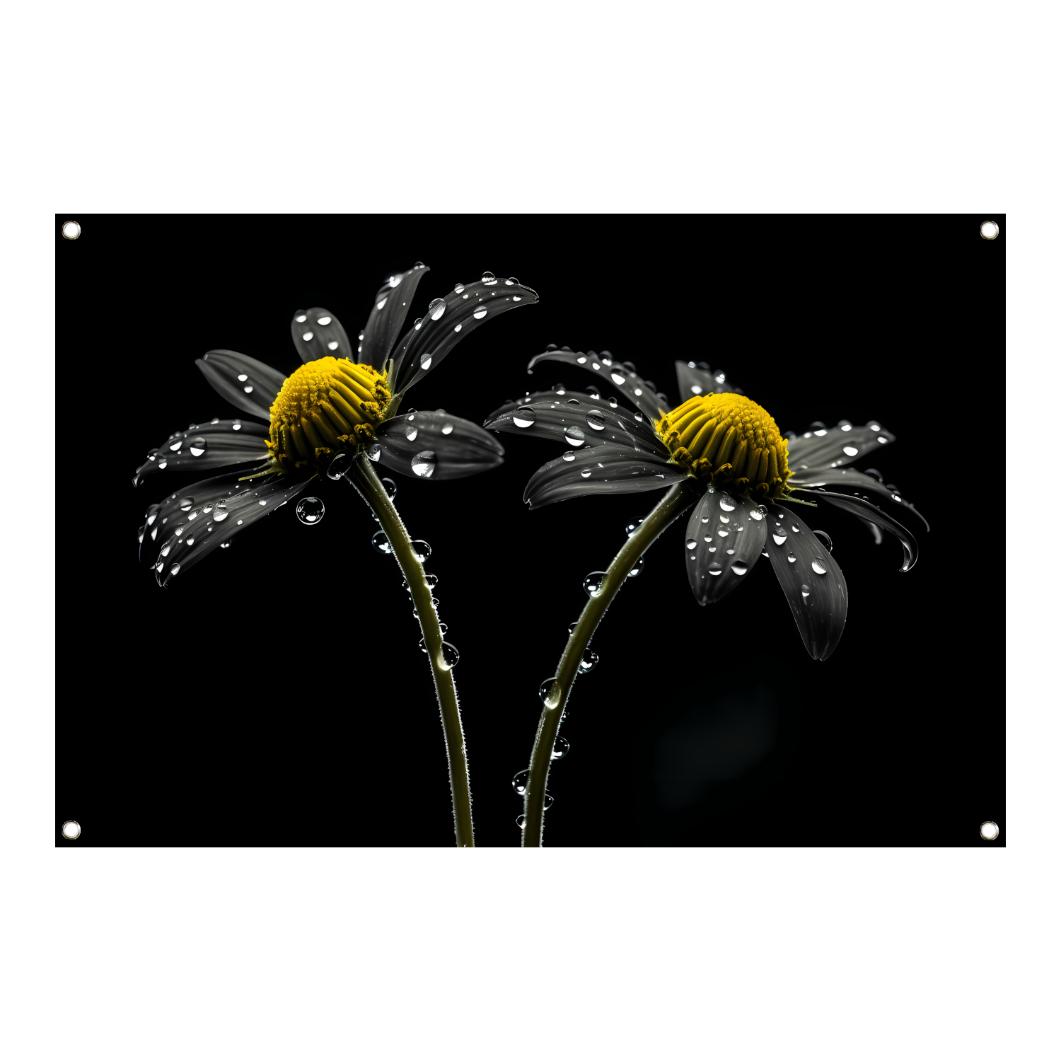 Zwart-wit bloemen met waterdruppels tuinposter