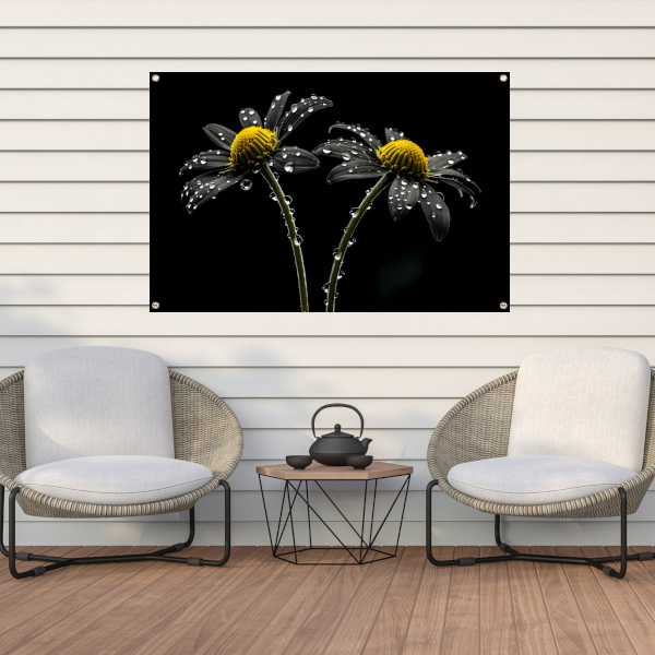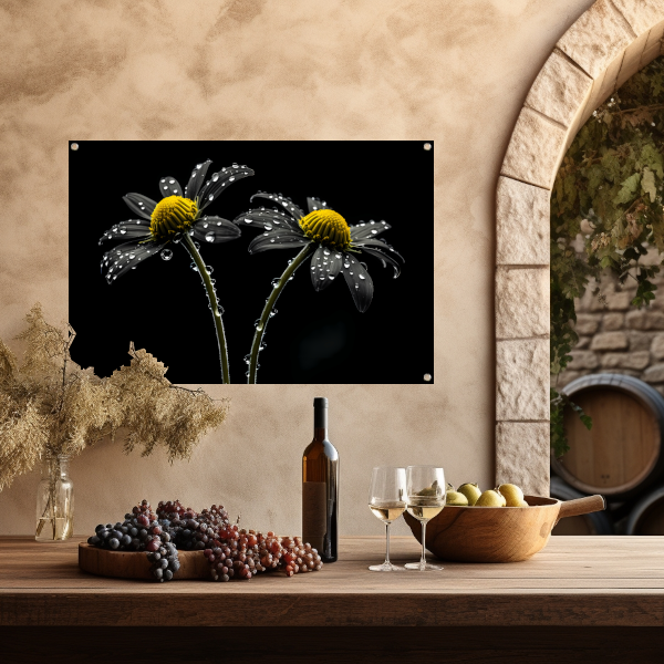 Haal de natuur in huis met deze zwart-wit bloemen met waterdruppels tuinposter en geef jouw tuin een unieke en sfeervolle uitstraling. Bestel nu en geniet van de rustgevende en tijdloze schoonheid van deze tuinposter.