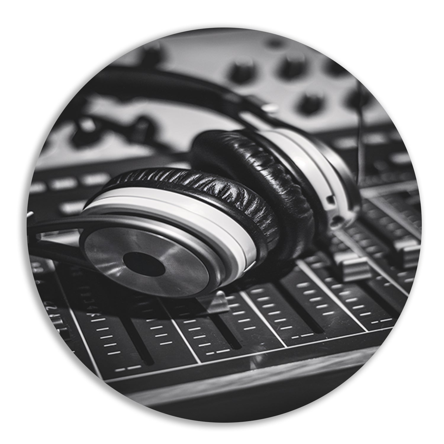 Zwart-wit foto studio koptelefoon forex muurcirkel