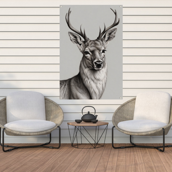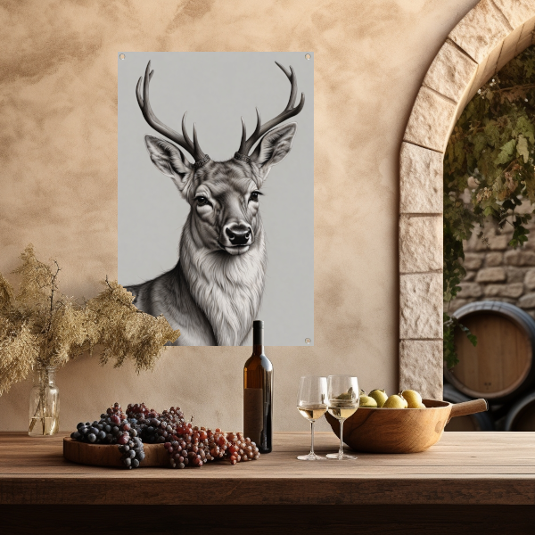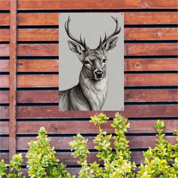 Zwart-Wit Hert met Imposant Gewei tuinposter