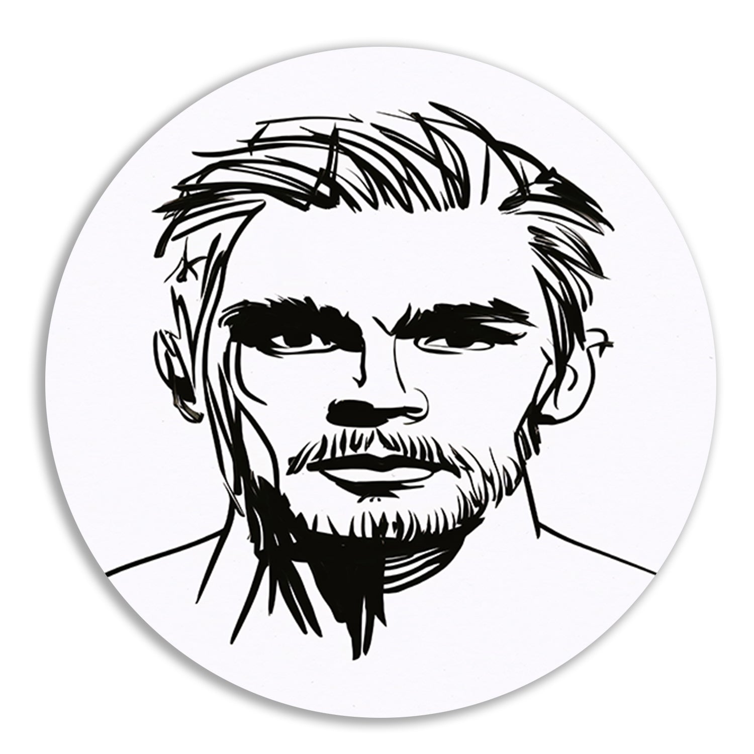 Zwart-wit lijnportret van een man met baard aluminium muurcirkel