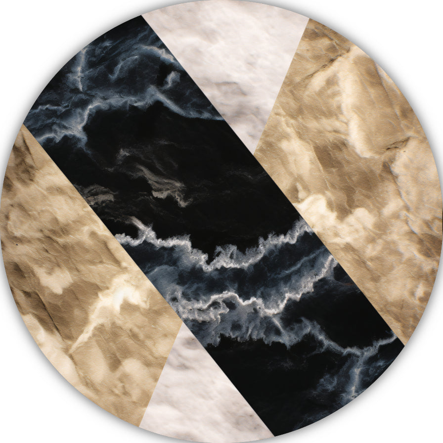 Zwart-wit marmeren behang met aders aluminium muurcirkel