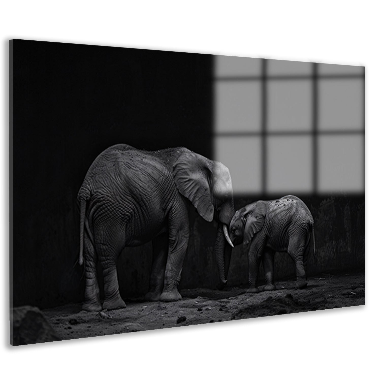 Zwart-wit olifanten moeder en kalf kunst acrylglas