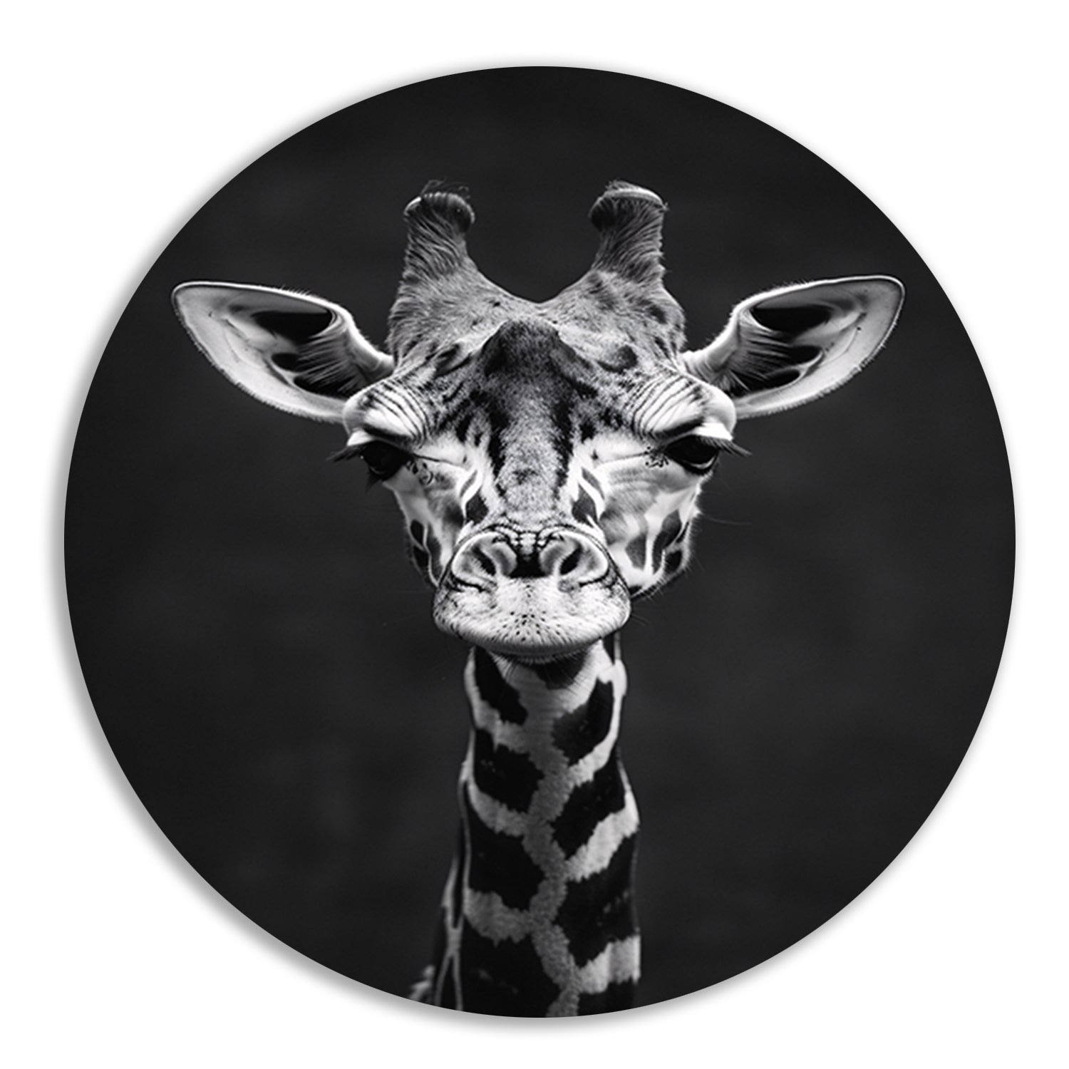 Zwart-wit portret van een giraf aluminium muurcirkel