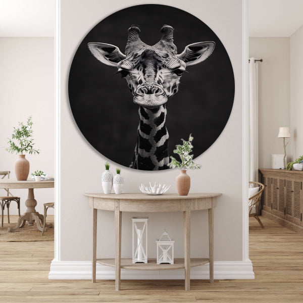 Breng de schoonheid en gratie van de natuur in huis met deze prachtige zwart-wit giraf muurcirkel.