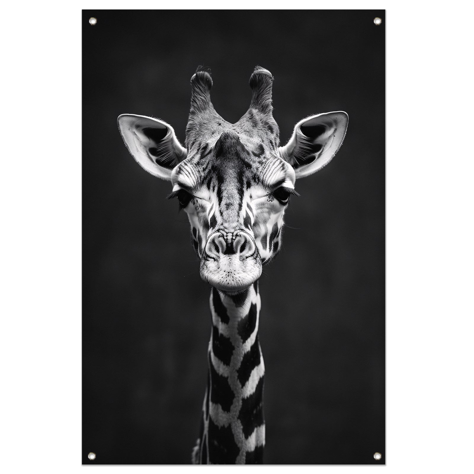 Zwart-wit portret van een giraf tuinposter