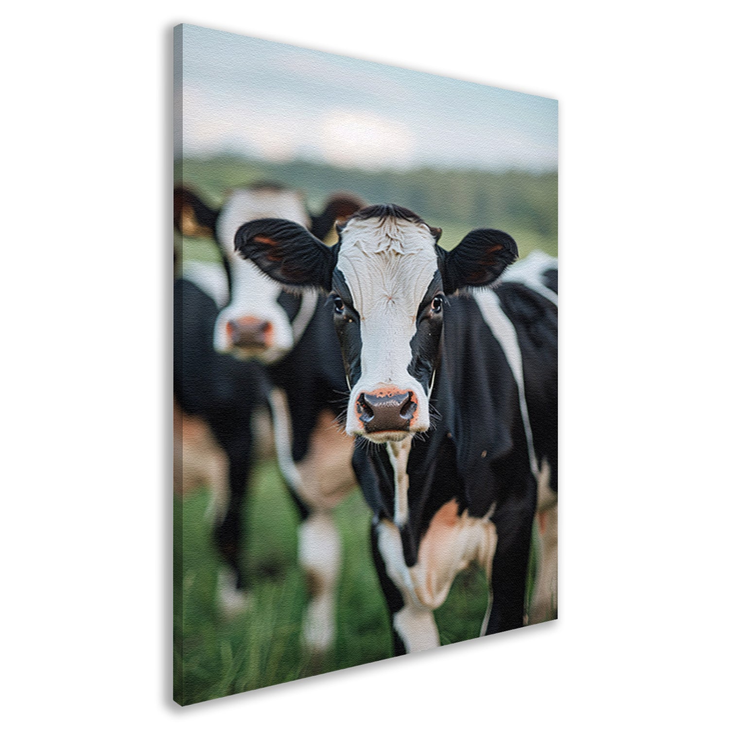 Zwart-wit portret van een nieuwsgierige koe canvas