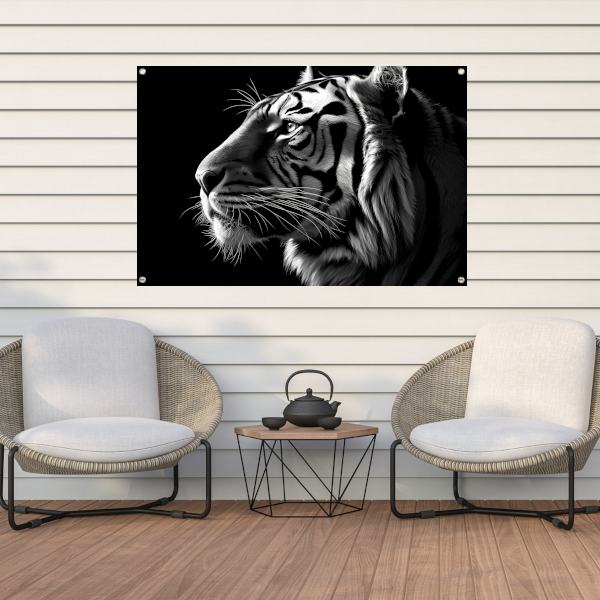 Zwart-wit portret van een tijger tuinposter