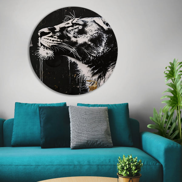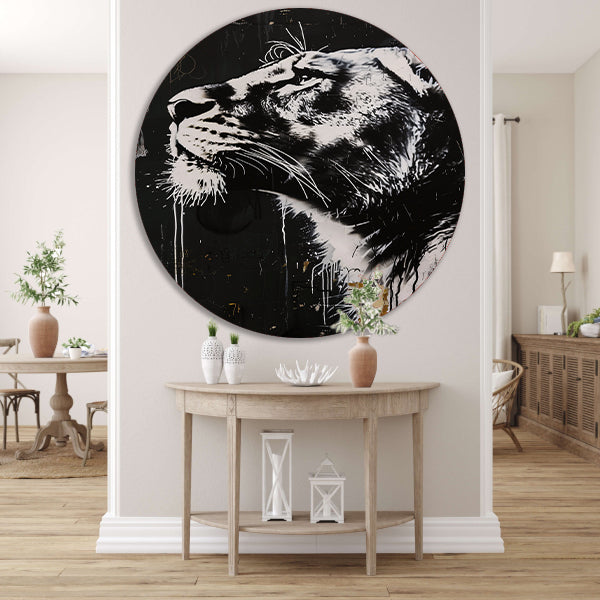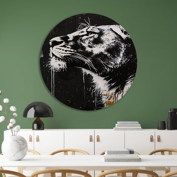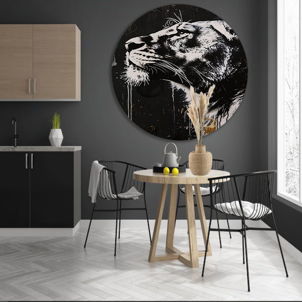 Zwart-wit portret van een trotse leeuw forex muurcirkel