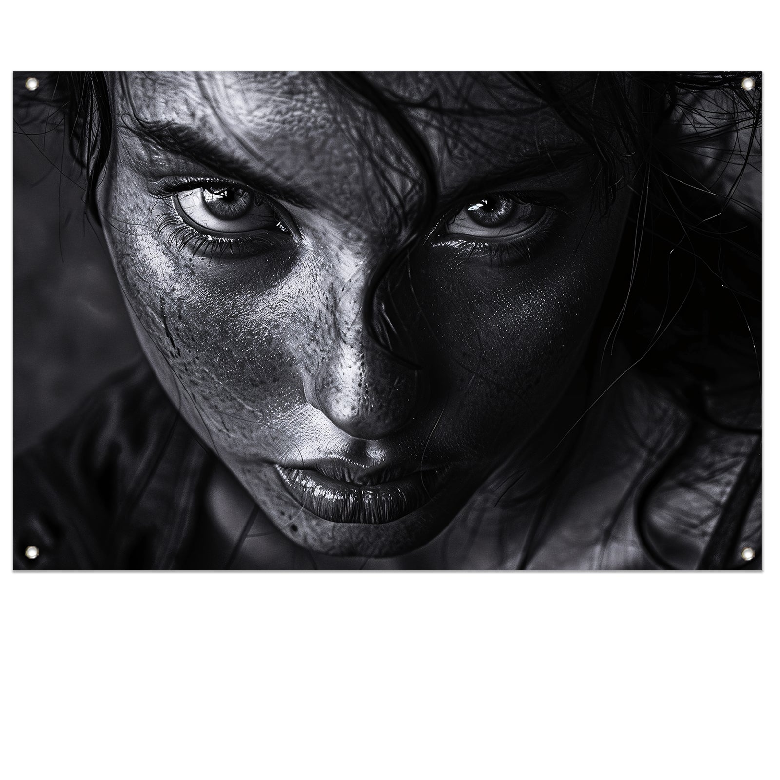 Zwart-wit portret van intense vrouw tuinposter