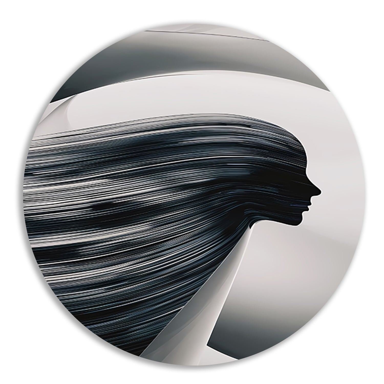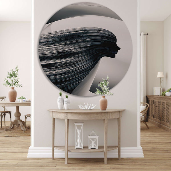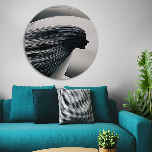 Zwart-wit Silhouet van Golvende Lijnen aluminium muurcirkel