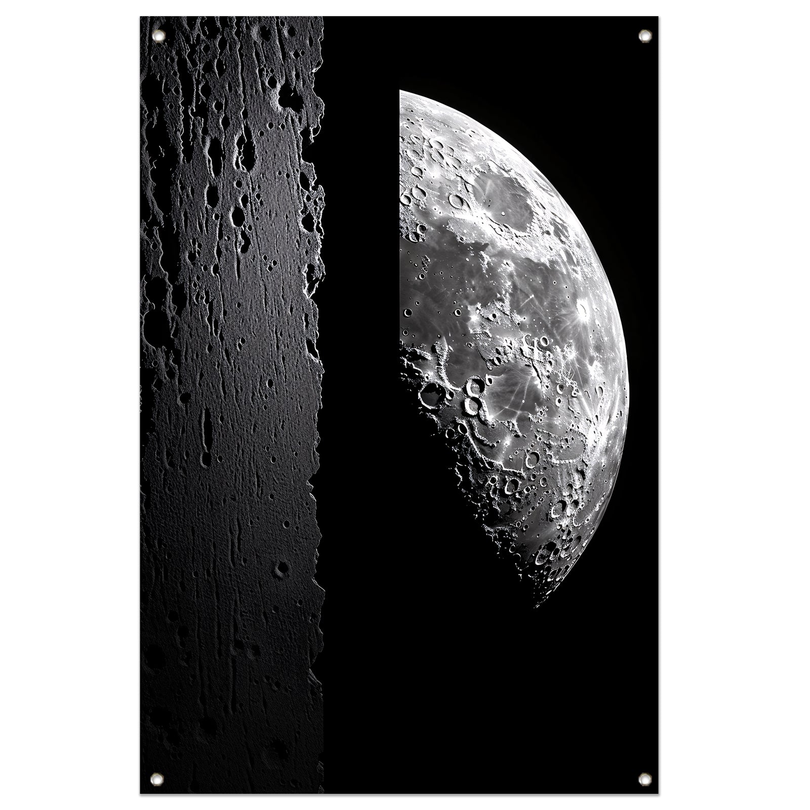 Zwart-witfoto van de halve maan met kraters tuinposter