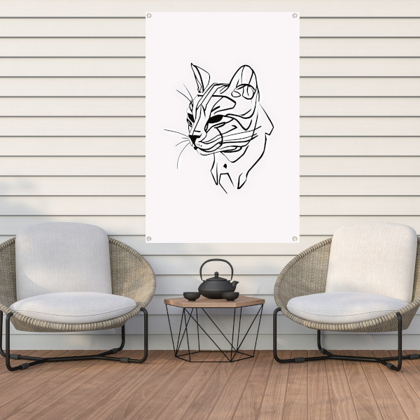 Zwart-witte Abstracte Kattenlijntekening tuinposter