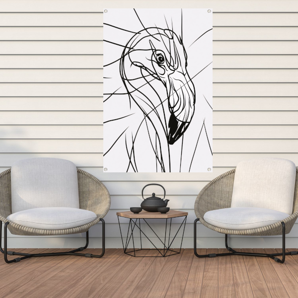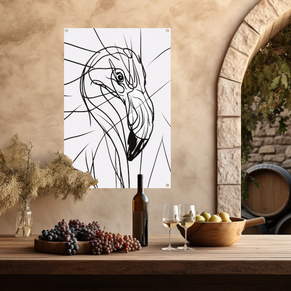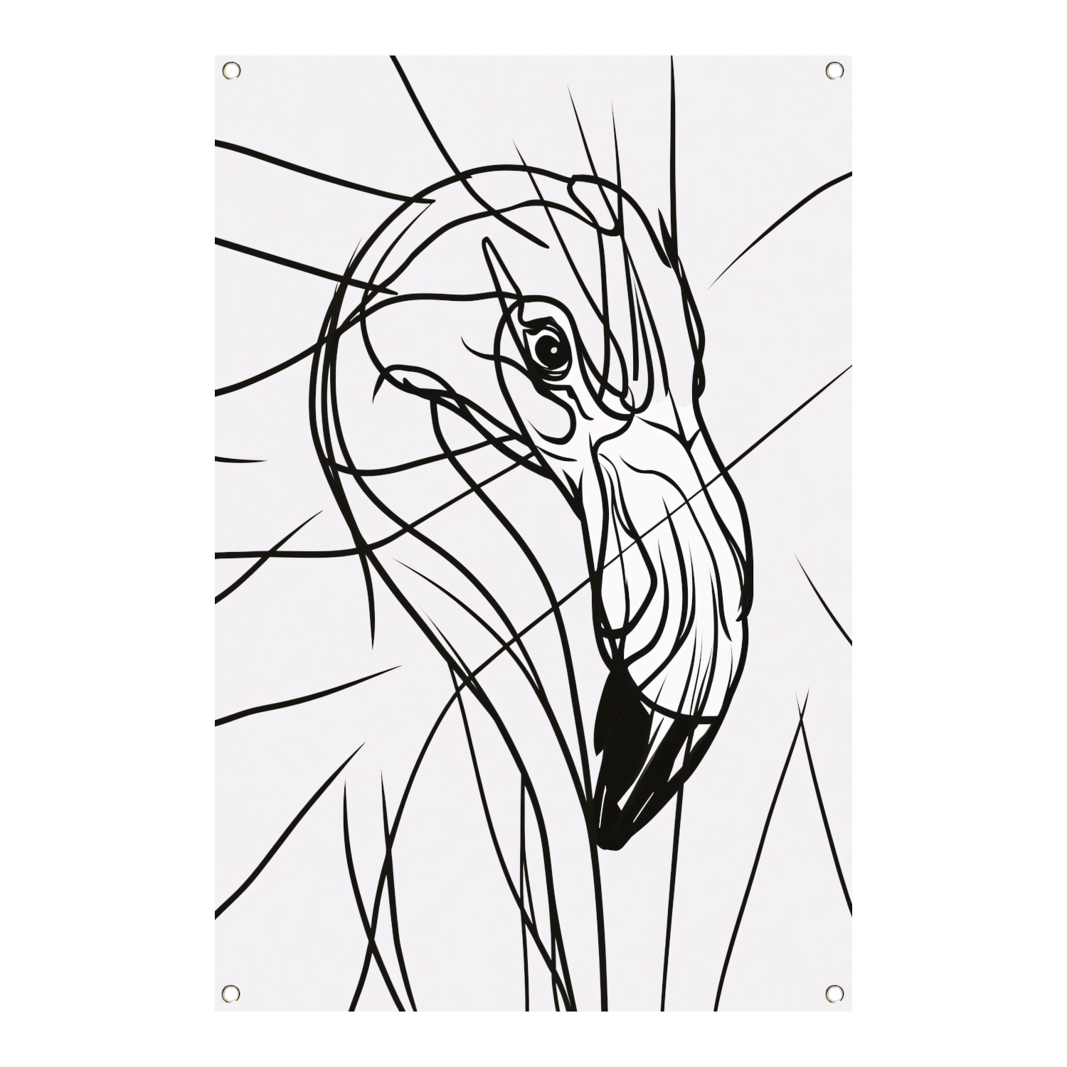 Zwart-witte abstracte vogel lijnkunst tuinposter