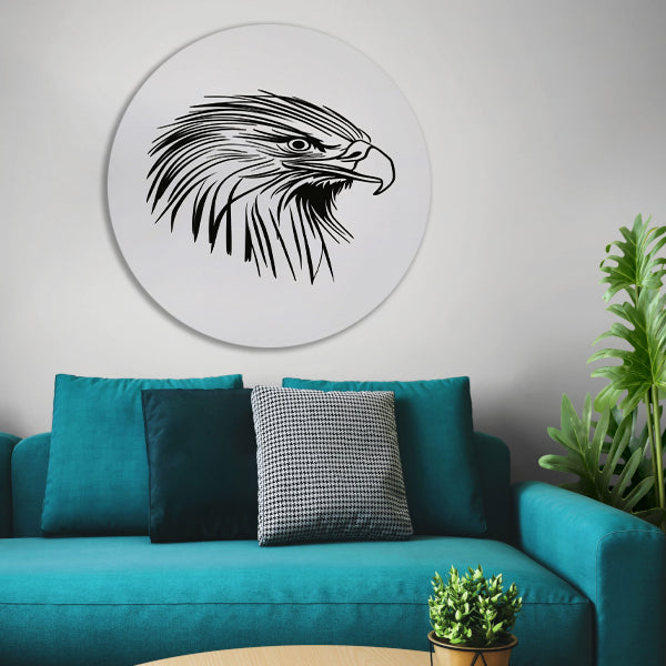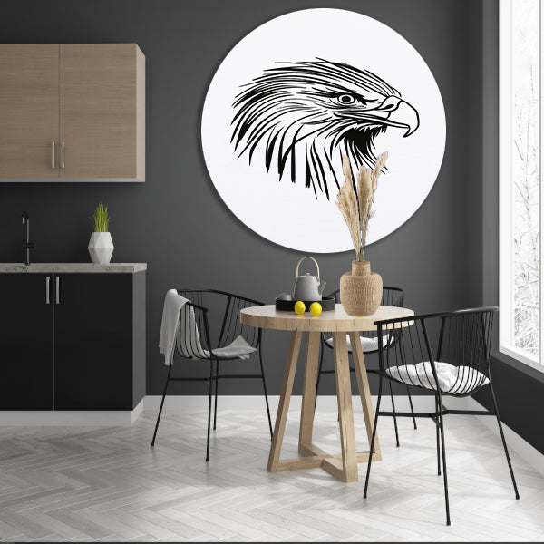 Zwart-witte lijntekening van een adelaar aluminium muurcirkel