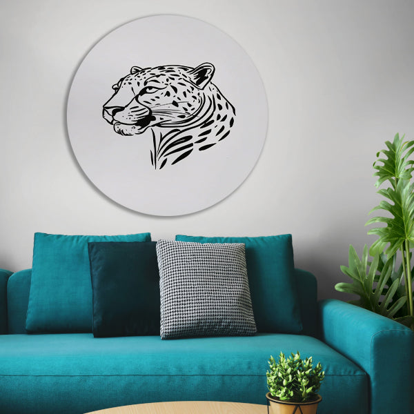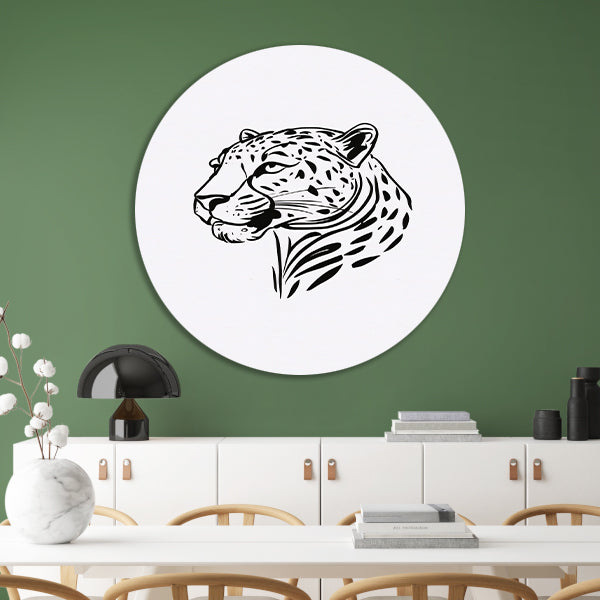 Zwart-witte luipaard lijnkunst minimalisme aluminium muurcirkel