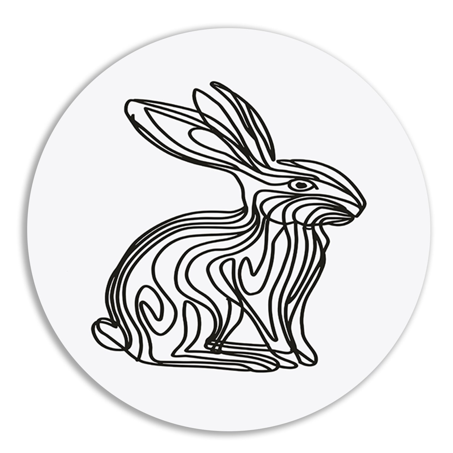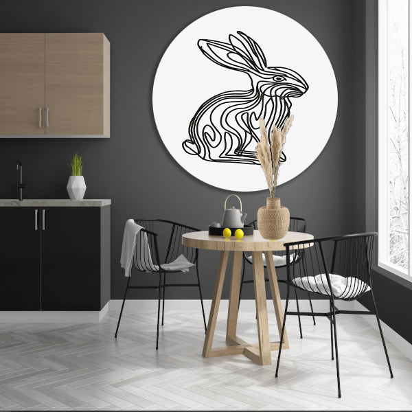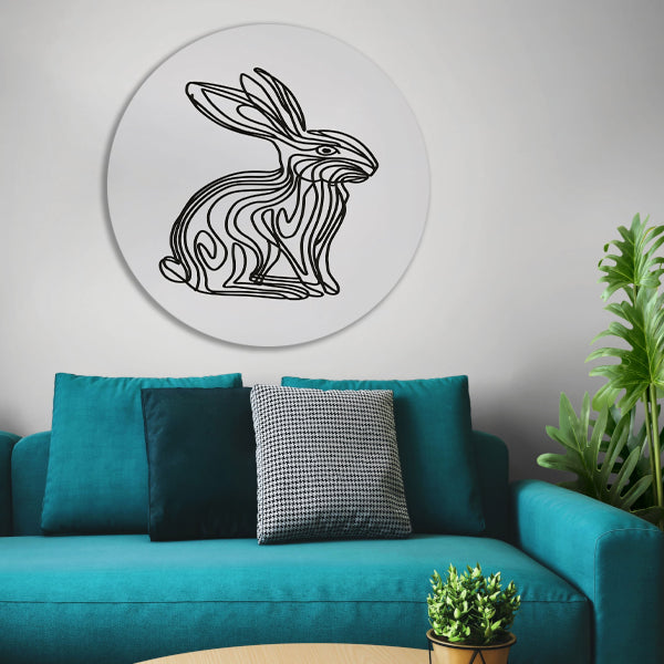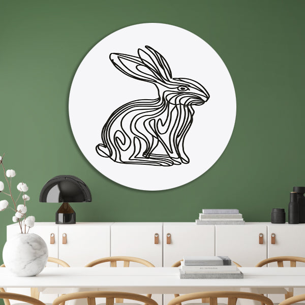 Zwart-witte minimalistische konijn lijn-kunst aluminium muurcirkel