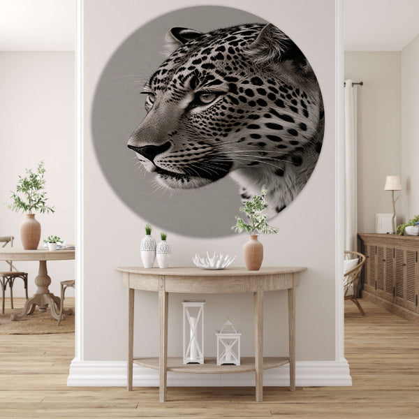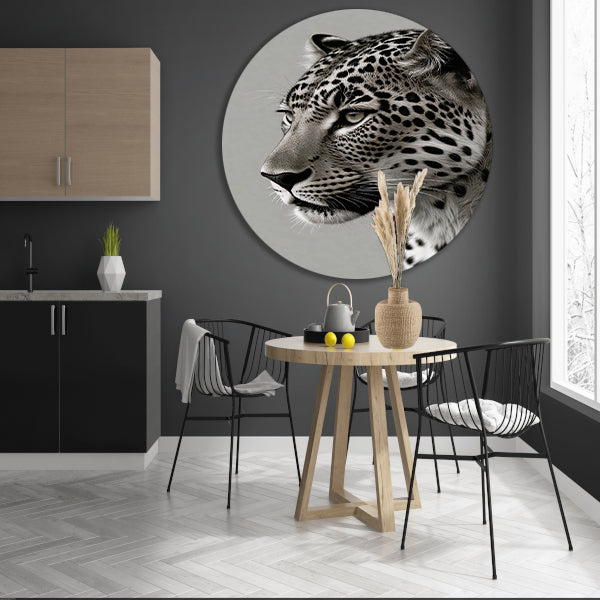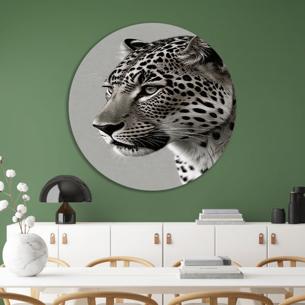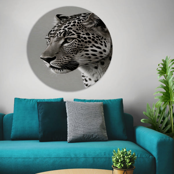 Zwart-witte Minimalistische Luipaard Blik aluminium muurcirkel