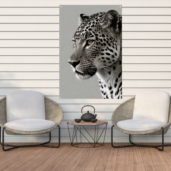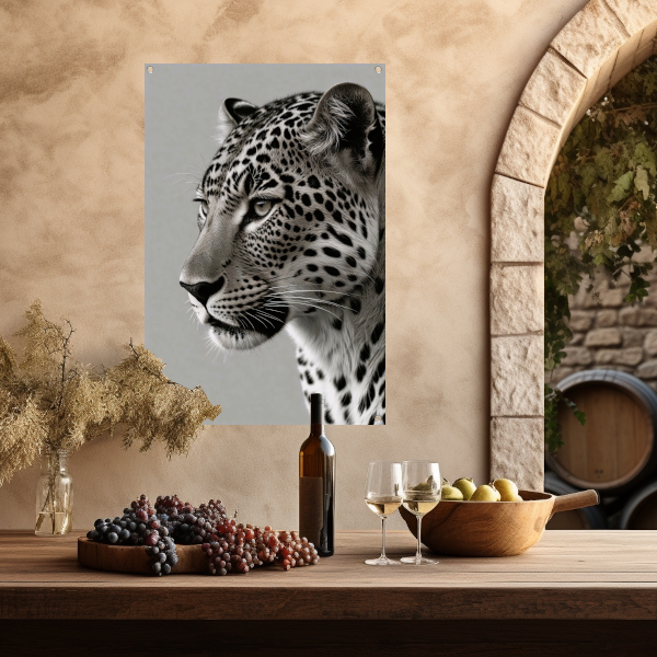 Zwart-witte Minimalistische Luipaard Blik tuinposter