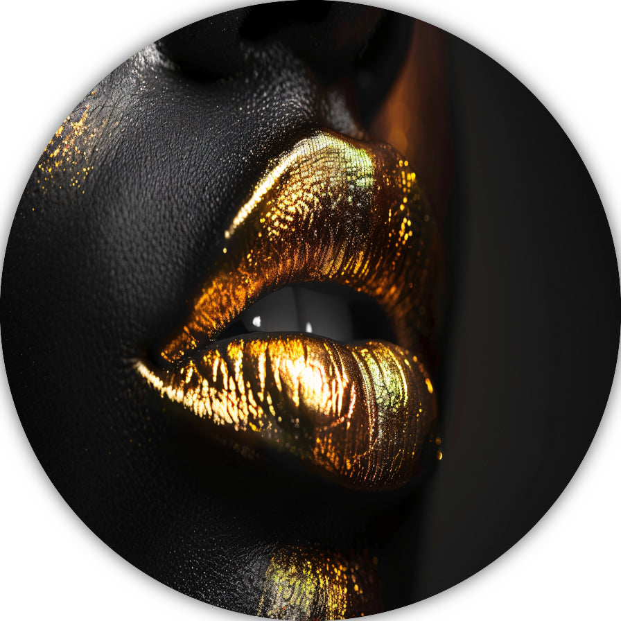 Zwarte Achtergrond met Gouden Lippen aluminium muurcirkel