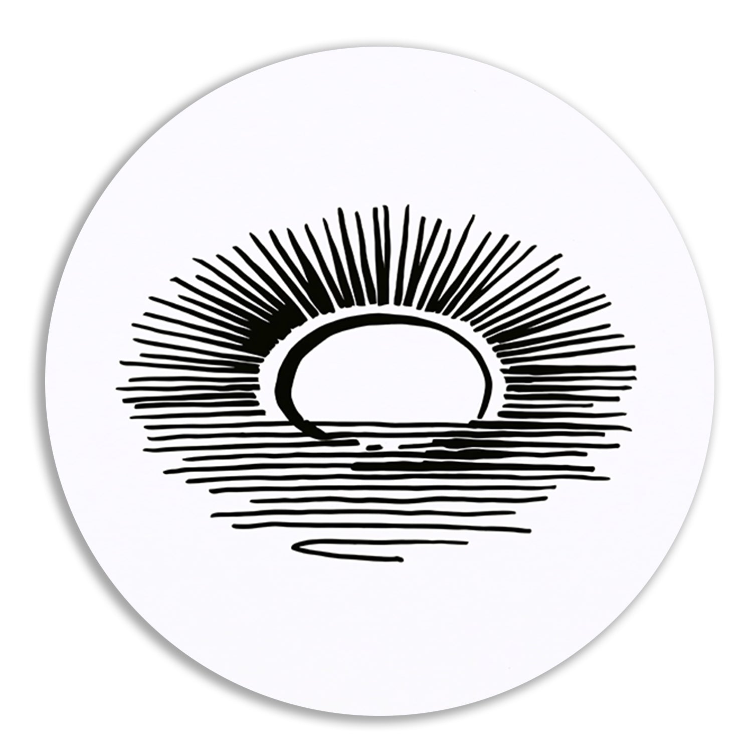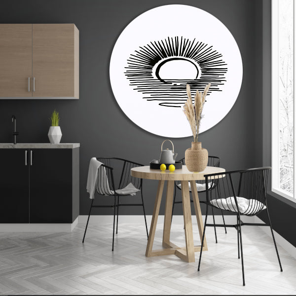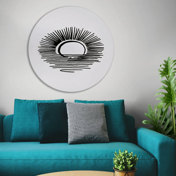 Zwarte en witte minimalistische zonsopkomst aluminium muurcirkel