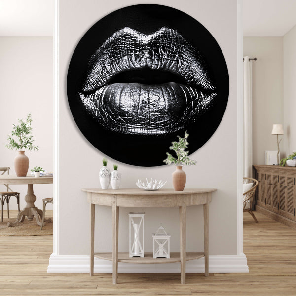 Zwarte glanzende lippen met reflecterende textuur aluminium muurcirkel