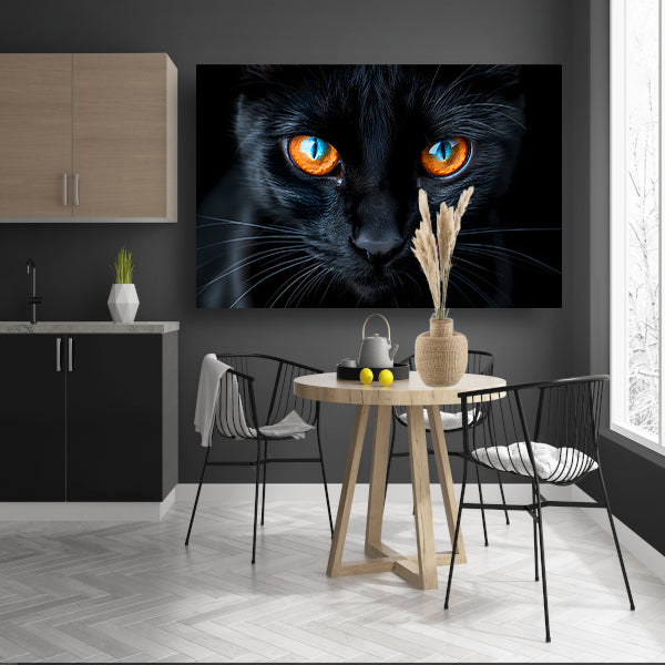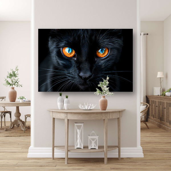 Zwarte kat met blauwe en oranje ogen poster
