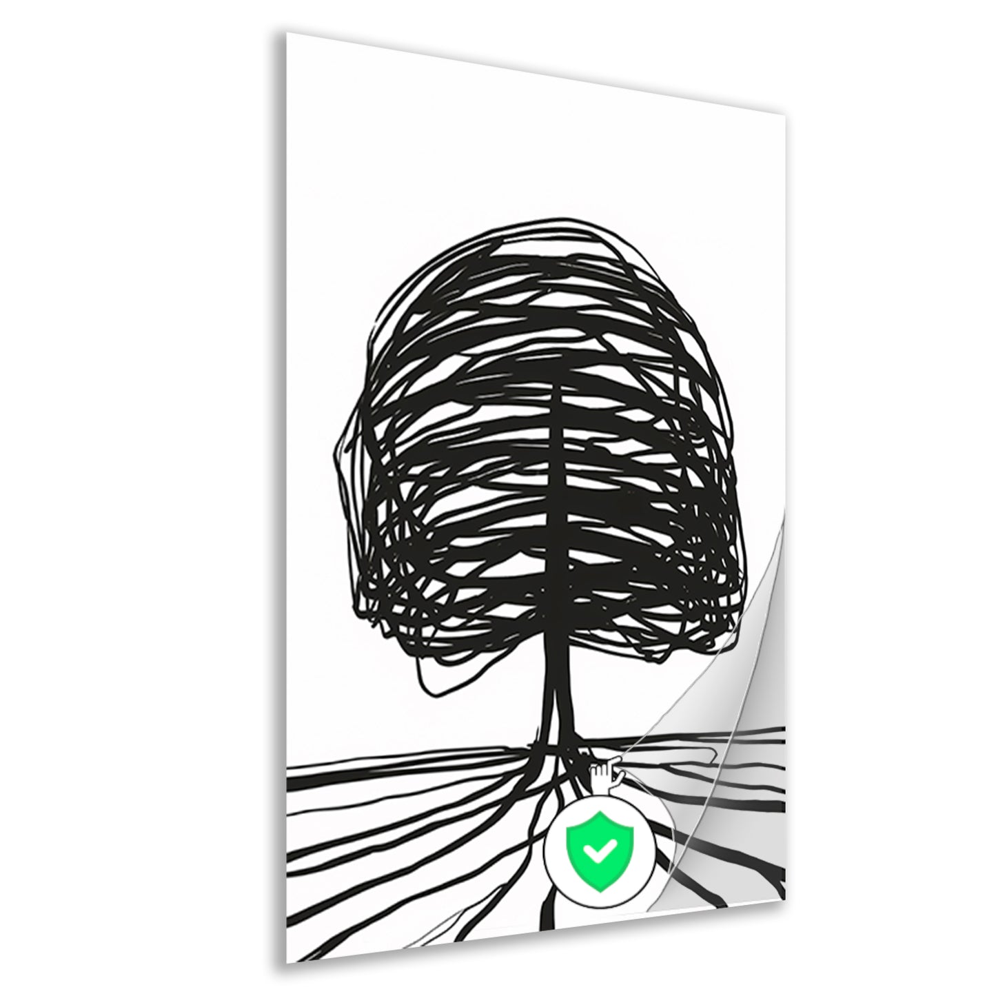 Zwarte lijnen boom met wortels illustratie poster