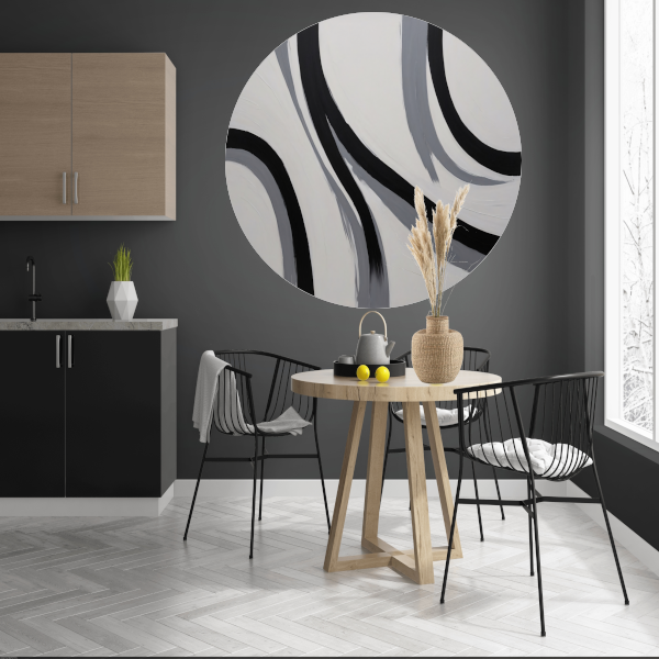 Zwarte lijnen op wit abstract aluminium muurcirkel
